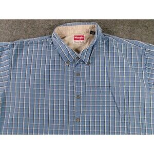 Wrangler Shirt Men XXL Blue Plaid Classic Causal Outdoor Workwear Short Sleeve