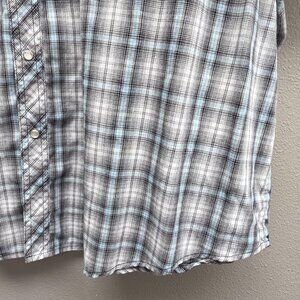 Wrangler Shirt Mens 2XL Gray Blue Plaid Western Pearl Snap Short Sleeve Cowboy
