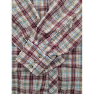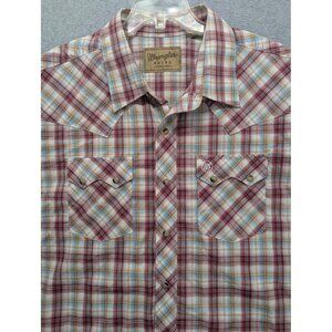 Wrangler Shirt Mens 2XL Red Blue Plaid Retro Western Pearl Snap Cotton Cowboy
