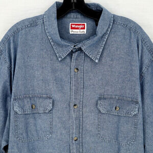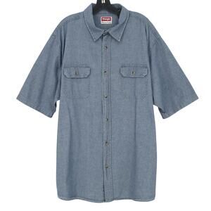 Wrangler Shirt Mens 2XT Big Tall Blue Cotton Casual Button Up Pockets Workwear