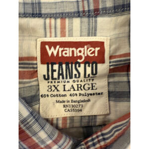 Wrangler Long Sleeve Shirt Mens 3X Large Red Blue Plaid Pearl Snap Western Cowboy