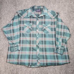 Wrangler Shirt Mens 4XL 20-35 Green Plaid Western Pearl Snap X-Long Tails Cowboy