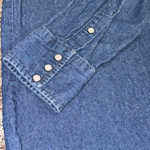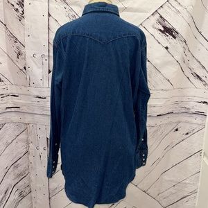 Wrangler Shirt Mens Dark Blue Denim Chambray Long Sleeve Western Snap Up