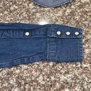 Excellent preloved conditions. No rips or stains on fabric. Raw hem , beautiful snap pearl buttons. Two front pockets.