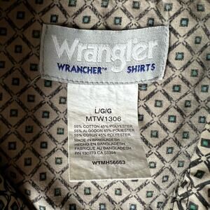 Wrangler Shirt Men's L Black Brown Green Wrancher Pearl Snap Cowboy Western