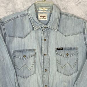 Wrangler Shirt Mens Large Blue Denim Indigo Button Up Western 90s Adult Y2K