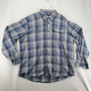 Wrangler Shirt Men's Long Roll Tab Sleeve Button Down Collared Plaid Blue XL
