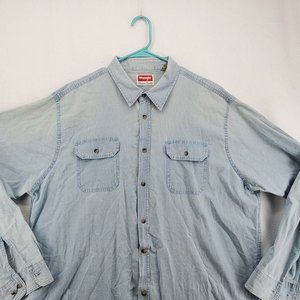 Wrangler Shirt Men's Long Sleeve Button Up Collared Denim Blue Extra Large