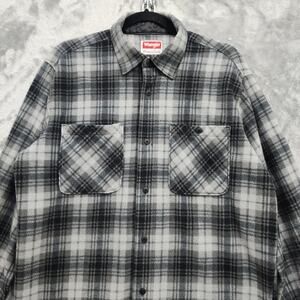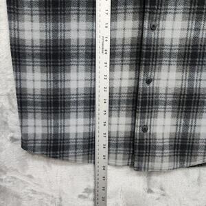 Wrangler Shirt Mens M Gray Black Plaid Fleece Flannel Button Front Long Sleeve Shacket
