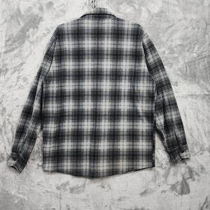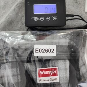 Wrangler Shirt Mens M Gray Black Plaid Fleece Flannel Button Front Long Sleeve