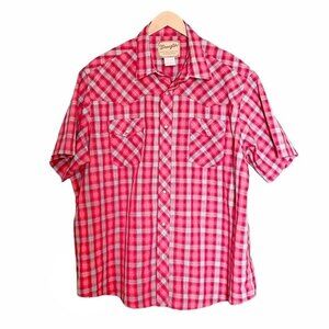 Wrangler Mens Top Western Red Plaid Pearl Snap Shirt Short Sleeve Men’s Size 2XL