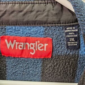Wrangler Shirt Mens Sz 2XL Blue Plaid Checkered Button Up Long Sleeve Flannel