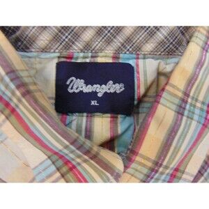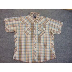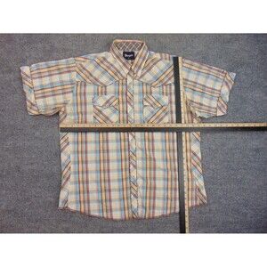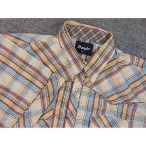 Wrangler Shirt Mens XL Tan Blue Rockabilly Western Cowboy
