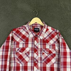 Wrangler Shirt Mens XXL Red Plaid Pearl Snap Western Button Up Long Sleeve