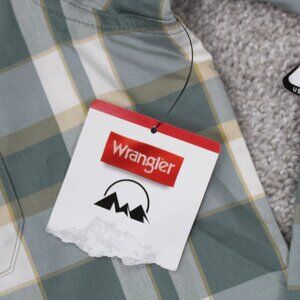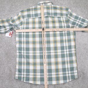 Wrangler Shirt NWT Mens Large Green/Yellow Regular Fit Roll Sleeve Stretch L/S