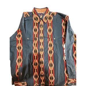 Wrangler Shirt Vintage Aztec Print Mens Pearl Snap Size Large
