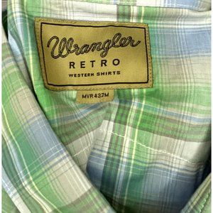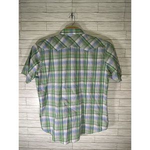 For sale is this Wrangler Shirt Western Fashion Pearl Snap Button Up Plaid Green Short Slv Sz 2XL