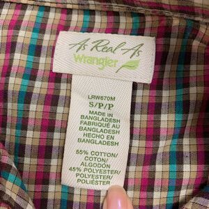 WRANGLER SHIRT WOMENS S SMALL PLAID AS REAL AS PEARL SNAP BUTTON WESTERN POCKET