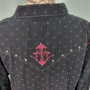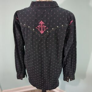 Wrangler Shirt Womens extra large Pearl Snap Button Long Sleeve Western Black