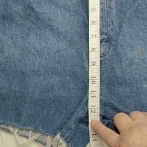 Wrangler Shorts Vintage USA Mini High Rise Western Women 7/8 Cut-off Mid Wash Blue Frayed Zip and Button Closure Belt Loops