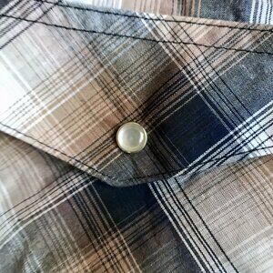 Upgrade your wardrobe with this stylish and versatile Wrangler Short Sleeve Brown Western Pearl Snap Shirt. The shirt features a collared neckline with a point collar style and short sleeves, making it perfect for any occasion. The shirt comes in size XL and is made of 55% cotton and 45% polyester, making it comfortable to wear and easy to care for as it is machine washable.