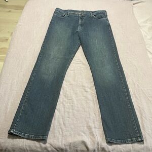 Wrangler Size 38 x 34 Relaxed Fit Blue Bootcut Jeans Classic Style Workwear Men