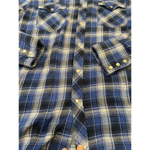Wrangler Size L Blue Plaid Pearl Snap Button Cowboy Western Button Down Shirt