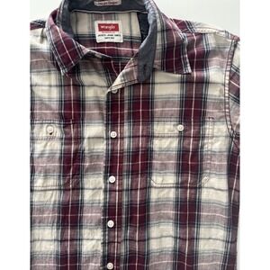 Wrangler Size M Long Sleeve Button Up Shirt Plaid Maroon Blue Cream Comfort