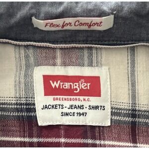 Wrangler Size M Long Sleeve Button Up Shirt Plaid Maroon Blue Cream Comfort. Condition is Pre-owned.