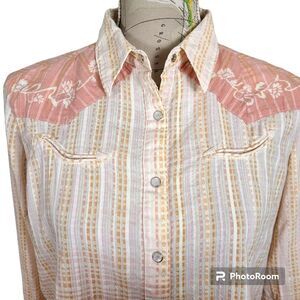 Wrangler Size Medium Pink Embellished Shoulders Snap Button Down Shirt Western