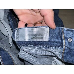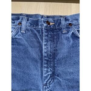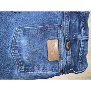 Introducing the Wrangler 936PWD 936 Denim Blue Jeans in size 33x34. These jeans feature a classic fit with a flat front and bootcut accents. The waist is equipped with a zipper fly and button, while the 5-pocket design provides ample storage space. The jeans are made of 100% cotton and are machine washable.