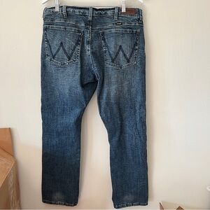 Wrangler Slim Straight/88 dark blue wash workwear style men’s jeans size 33/30- no size tag but it matches with this Lee jeans which are size 33