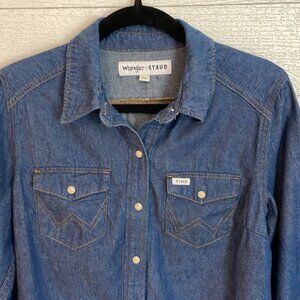 Wrangler +Staud Women's Denim Pearl Snap western cowboy button down sz Medium