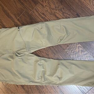 NWT Wrangler utility pants in a light brown color size 38x32. these pants feature seaming at the knees and pockets for added detail and comfort. There are also utility pockets,