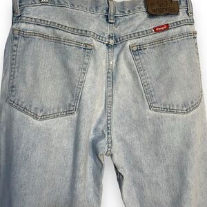 Wrangler Straight Leg Jeans Mens 32 X 30 Blue Denim Distressed Zip Casual FLAWED