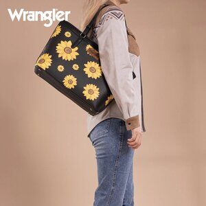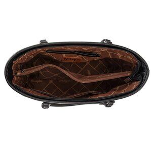 Inside of the bag includes a zippered compartment, a zippered pocket and 2 open pockets