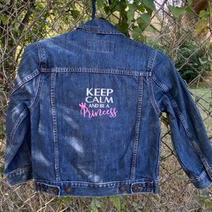 Wrangler Sz S/CH/P Denim Jean Jacket Custom Embroidered Princess Barbie