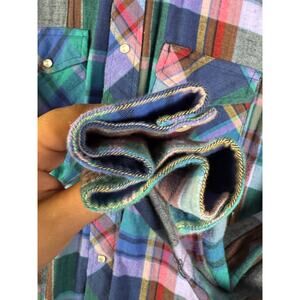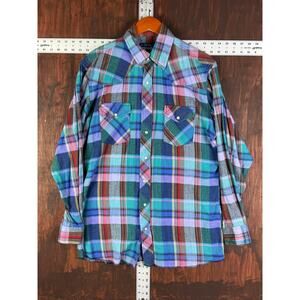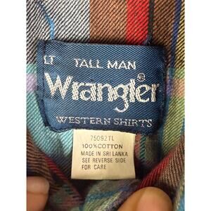 Wrangler Tall Man Pearl Snap Plaid Flannel Pearl Snap Rockabilly Shirt Mens XL