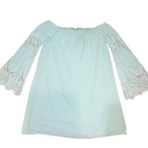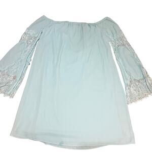 Wrangler Teal Blue Off Shoulder Bell Sleeve Lace Top Size Medium