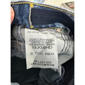 The Wrangler Toddler’s Blue Jeans in size 3T are a classic choice for young children. Made of 100% cotton denim, these solid blue jeans feature a zip closure and adjustable waist for a comfortable fit. Perfect for casual occasions, these ankle-length jeans are machine washable for easy care. The Western theme adds a touch of style, making them versatile for all seasons. Ideal for play and everyday wear, these Wrangler jeans are a timeless addition to any toddler's wardrobe.