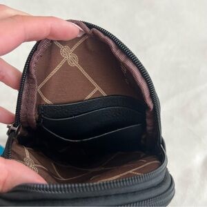 Inside of the bag includes an pocket and 2 card slots