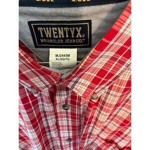 Wrangler Twenty X Long Sleeve Button Up Men's XL Red/White/Light Blue Checked