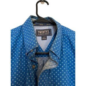 Wrangler Twenty X Mens Button Down Western Wear Shirt Large Short Sleeve Blue g2