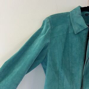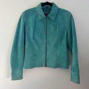 Wrangler Twenty X Vintage 100% Leather Jacket Full Zip Turquoise Size M
