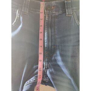 Inseam measures 33", not 34, see pic. rise is 11. Waist 32. Small amount of puckering under right hip pocket as seen in last pic, otherwise in good condition. Flex inner elastic waistband for comfort and stretch.