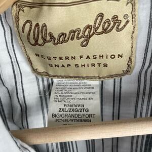 Wrangler VTG Mens Shirt 2XL White Gray Striped Pearl Snap Western Cowboy Rodeo