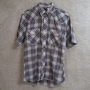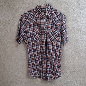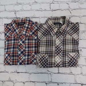 Wrangler VTG Women Button Down Lot of 2 Shirts Pearl Snap Short Sleeve Plaid M
