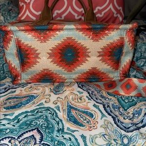 Stylish and vibrant, the Wrangler Multicolor Tote Bag is perfect for any occasion. Featuring a unique pattern with brown accents, this bag adds a pop of color to your outfit. Ideal for everyday use. I got this bag and used it one day! A little small for me! Retail 80 bucks!