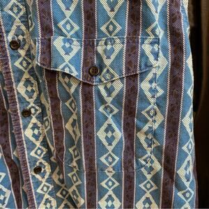 Wrangler Vintage 90s LS Shirt Blue Purple Aztec Print Button Down Men Sz 16.5-34