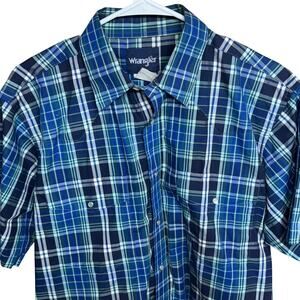 Wrangler Vintage Blue Plaid Pearl Snap Button Up Cotton Short Sleeve Shirt Men Large